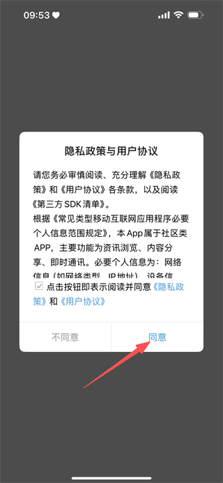 1、在隐私政策与用户协议弹窗中,点击同意,进入该应用的首页。