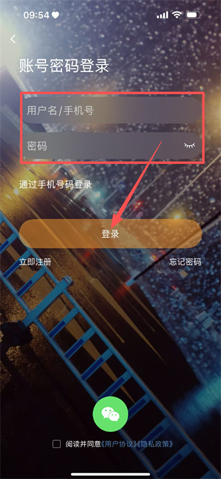 4、在账号密码登录页面,填写用户名和密码,点击登录,完成账号登录操作。