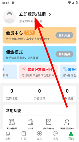 2、在我的页面,点击上方的立即登录注册,进入登录注册界面。