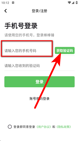 3、在手机号登录页面,输入您的手机号码,点击获取验证码。