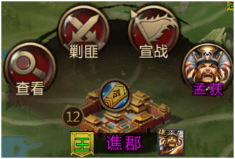 -点击三国战争界面右上方的世界按钮,可前往世界地图,在世界地图中时该按钮会变为回城,点击按钮后将回到城池中。