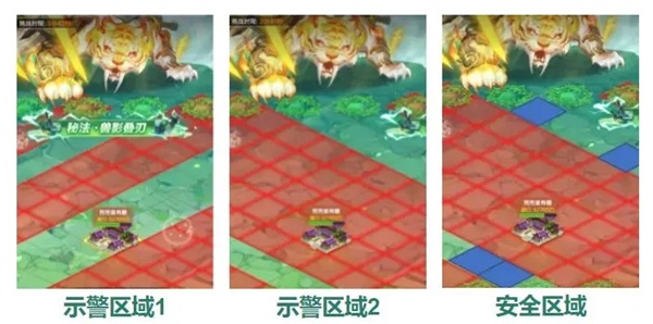 在出现示警区域1后,先立刻搬移到示警区域1外的格子,然后观察并记忆示警区域2。在boss进行第一下攻击后立刻搬到示警区域2外的安全区域再进行对boss的攻击。该方法适合找不到共同安全区域的时候使用。