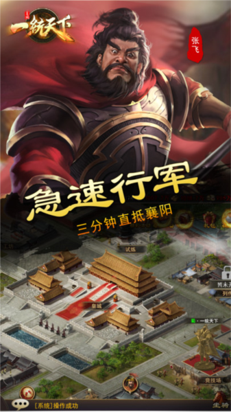 三国一统天下将带您进入一个热血激情的国战世界,在这里,您可以体验无间断的24小时国战乐趣。不同于其他游戏,本游戏拥有极速行军系统,让您可以在3分钟内快速到达目的地。