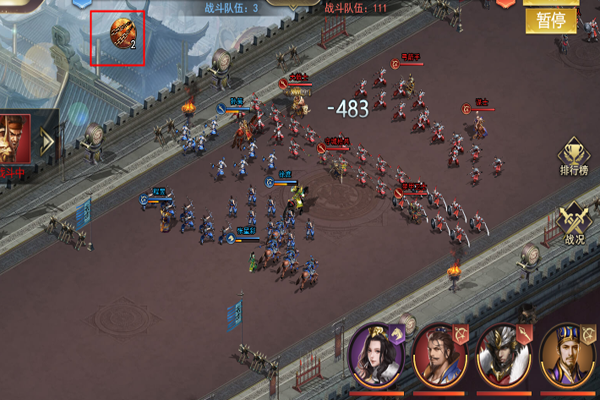 4、攻城战是攻防两边排队对抗的,在战斗界面里面打开右侧的战况界面是可以看到对战的部队列表的,每次打赢的部队就会跑到队列的后面,打输的部队被送回老家。算好排队的顺序有时候还能躲过很多险情。