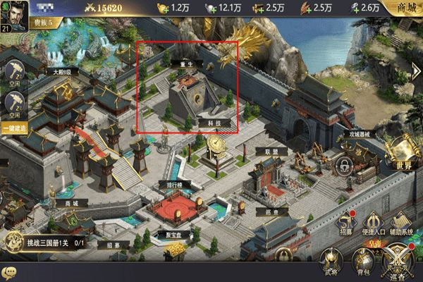 4、重生:在大殿等级7级后解锁,开启重生功能。开启重生功能后,就可以把之前培养错的武将重生,无损拿回培养资源。以后再也不用精打细算培养武将了,当然,不缺资源的大佬玩家可以无视这个功能。