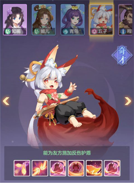 有3个主攻技能,1个天赋被动技能以及3个通用被动技能,主攻是可以单击也可以群伤的封印术,被动技能可以增强耐力以及减伤;而且前期在寻妖中也很好获得,比较好培养升级,和物攻以及法攻的妖灵一起组队可以起到很好的辅助作用。