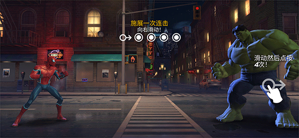1、在漫威超级争霸战游戏中使用双手点击屏幕任意位置继续