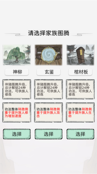 3、然后选择家族图腾,现有神柳、玄鉴、棺材板三种可以选择;