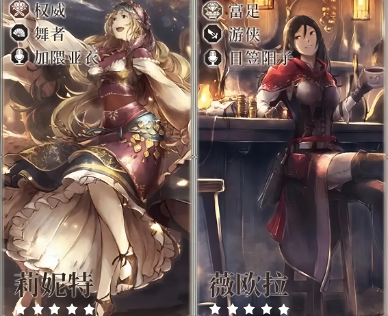 2、开服8个人中需要抽的就“游侠-薇欧拉”、“舞者-莉妮特”这两个,自选五星能够换其中一个