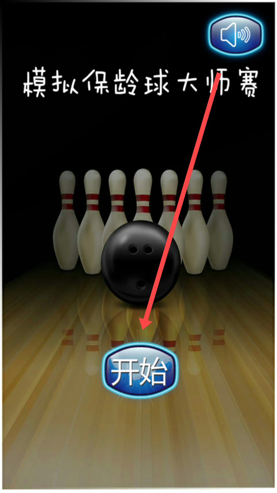 1、进入游玩界面后,找到标有【开始】字样的醒目按钮,轻轻点击开启保龄球游玩之旅。