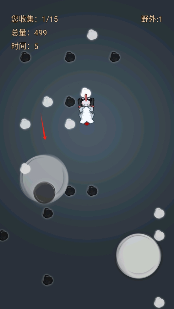 2、屏幕左边是摇杆,控制鬼的移动,收集豆子,注意左上角的任务及收集进度。