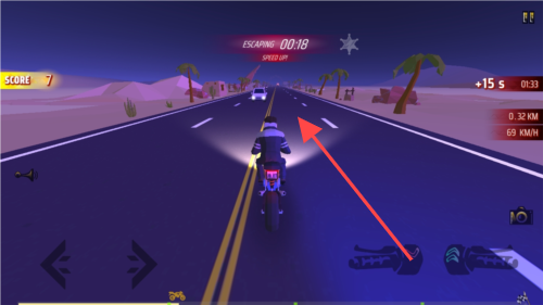 3、在驾驶过程中,注意【ESCAPING:00:18】倒计时,躲避前方车辆,获取【+15s】奖励延长时间。