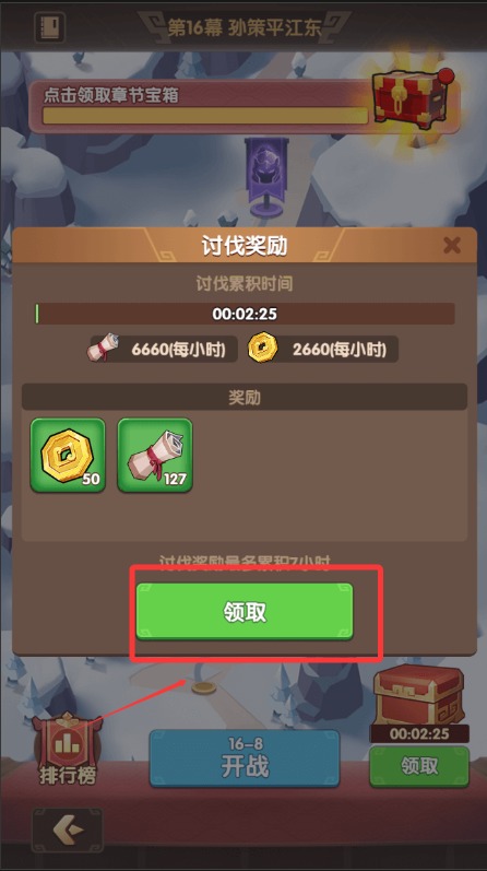 3、讨伐奖励最多可以累积7小时,请记得及时领取,领取后重新计时。