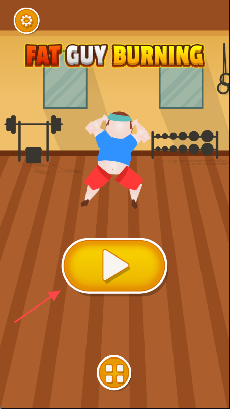 1、进入游戏界面,点击箭头所指的黄色【播放按钮】,开启【FAT GUY BURNING】游戏。
