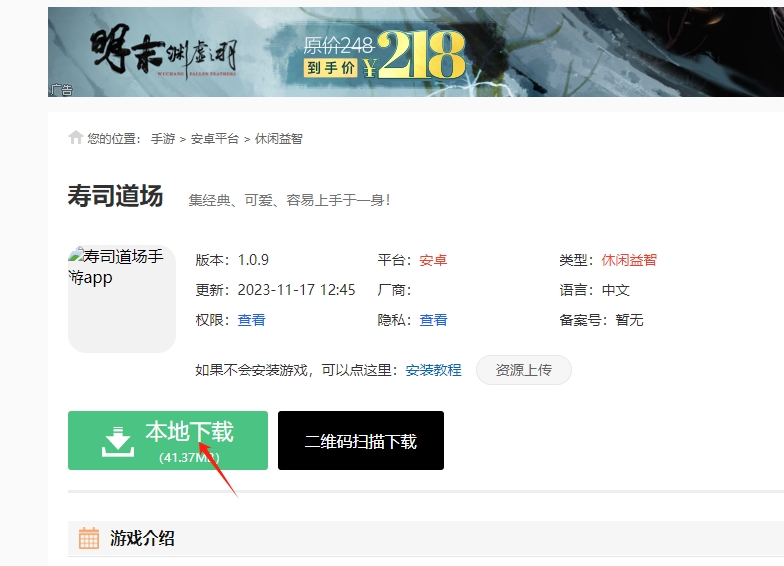 1、在网站上搜索寿司道场下载,并点击图片标记的链接进去下载。