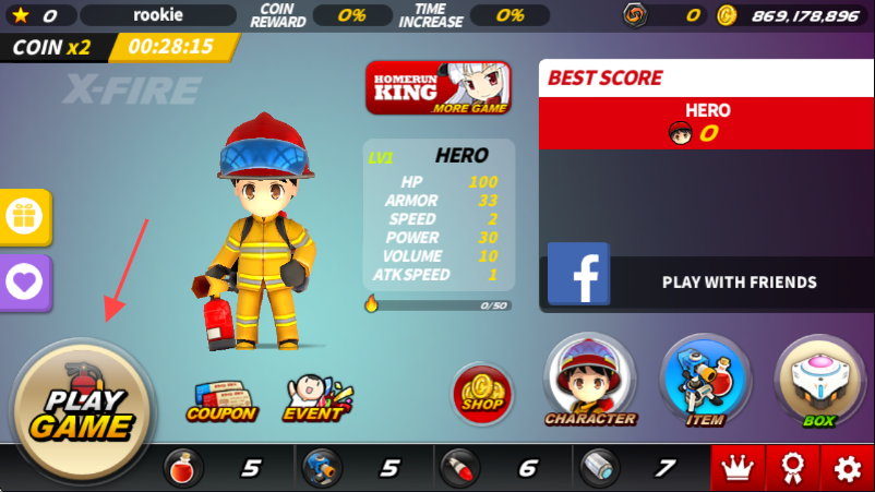 1、进入游戏界面,点击左下角标有【PLAY GAME】的按钮,开启游戏之旅。