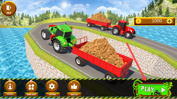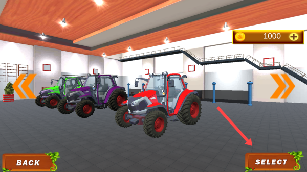 3、在拖拉机选择界面,点击【箭头】所指的【SELECT】按钮,选定拖拉机,开始游戏。