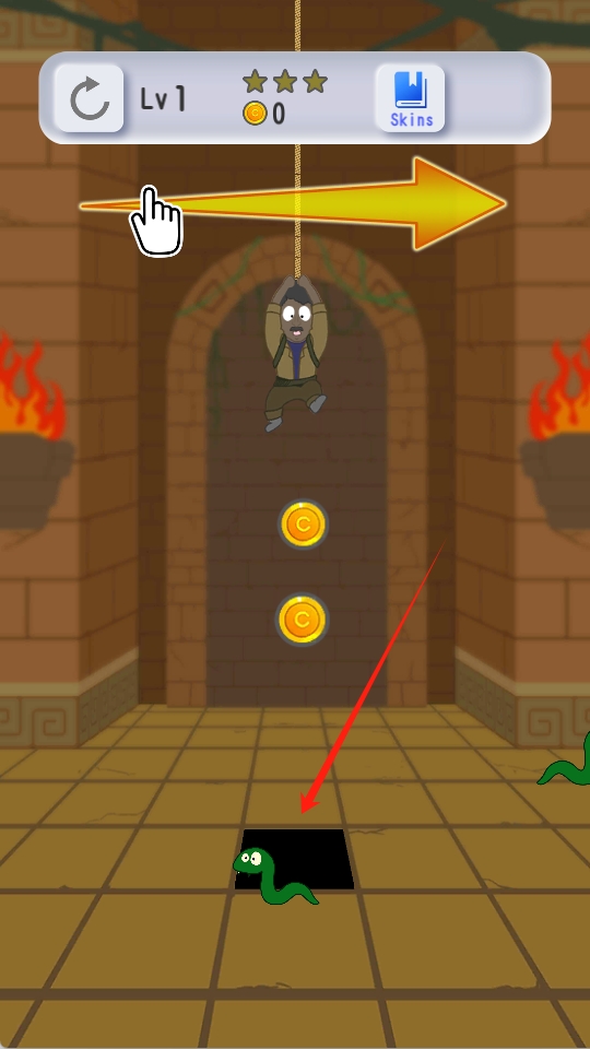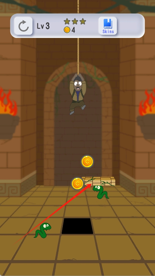 2、割绳操作与时机:点击屏幕割断绳索,利用物理规则引导角色移动。注意把握时机,避免角色掉落或触碰陷阱。