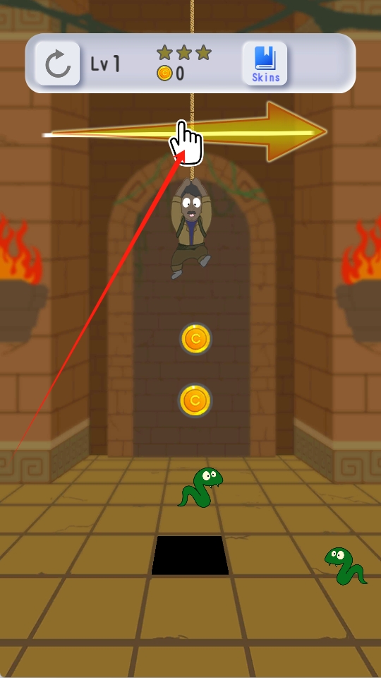 2、把握时机至关重要,例如在角色摆荡到最高点时割断绳索可获得最大水平位移,利用弹簧装置时需计算弹力方向与力度,收集沿途金币的同时,注意避开尖刺、激光等致命陷阱。