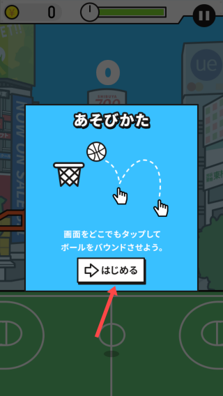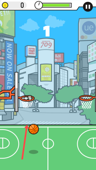 3、游玩开始后,按照【箭头】所指方向,点击屏幕使篮球弹跳,完成投篮得分任务。