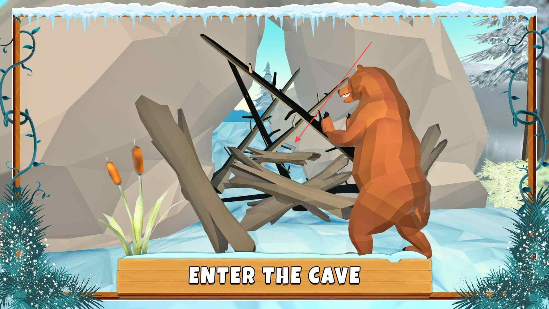 1、点击对应区域使棕熊按【ENTERTHECAVE】行动,进入洞穴场景开启游戏环节。