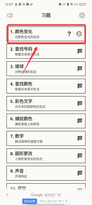 1、进入任意项目后根据提示完成相关反应测试,每种题型都有独立规则与挑战目标。