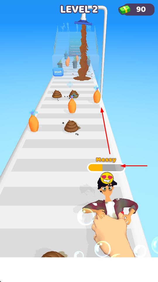 3、游戏设有关卡,玩家操控角色到达关卡终点,根据清洁状态获得不同评价,推进游戏进程。