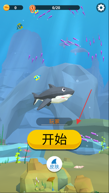 1、进入游戏界面后,点击【开始】按钮即可进入游戏,开启鲨鱼的冒险之旅。