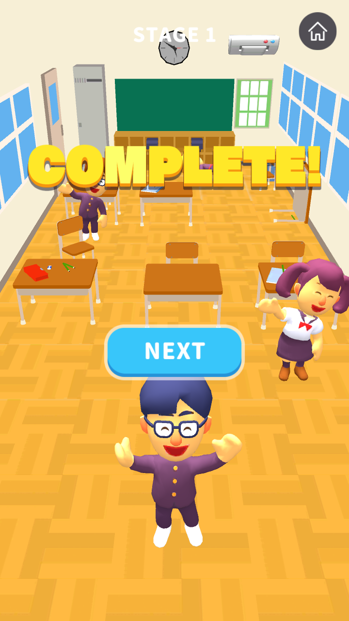 1、操控角色在教室场景移动,寻找【TARGET】目标,点击【BOMB】按钮引爆炸弹攻击目标。