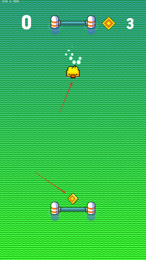 2、在水流湍急区域,滑动屏幕调整小鸭子移动方向,借助荷叶的弹力跨越宽距河面,同时收集沿途散落的金色羽毛道具。