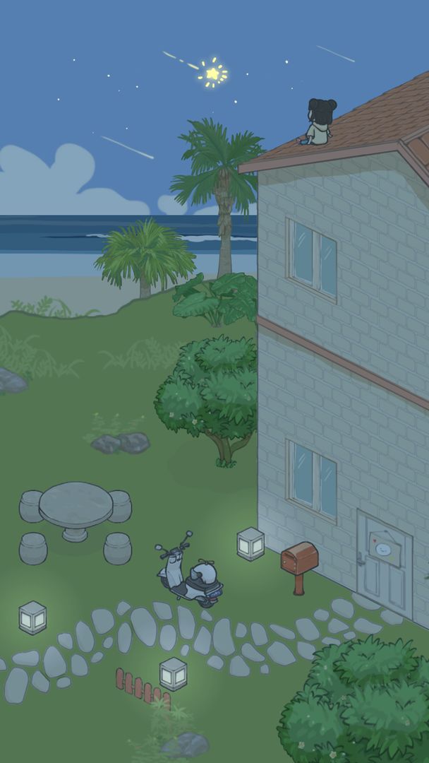 3、与场景互动(如屋顶人物、庭院物件),触发日常故事,体验团子们的生活。