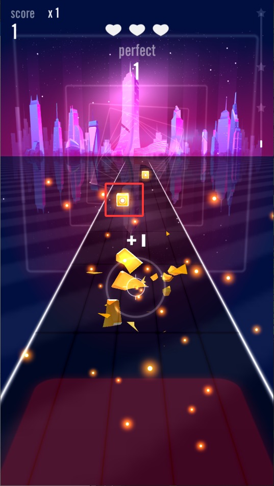 1、核心玩法是跟随节奏射击下落方块。玩家按住屏幕左右滑动控制准星移动,在方块到达目标区域时松开手指完成射击。