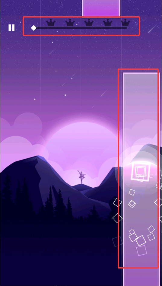 2、遇到短小的方块时快速轻点屏幕,准确击中每个音符才能保持连击不断。