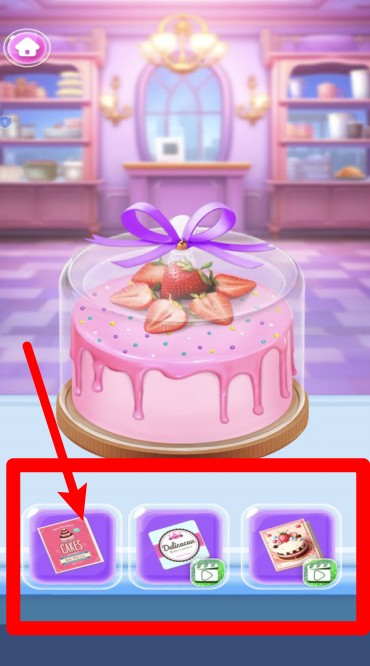 1.在游戏界面下方,可以看到不同的道具图标,点击后即可开始创作各种蛋糕。