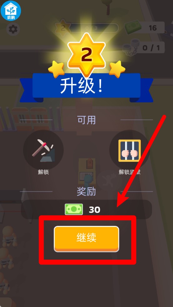 3.任务完成后点击“继续”按钮,领取奖励与升级,解锁新功能让你更轻松管理监狱工作。