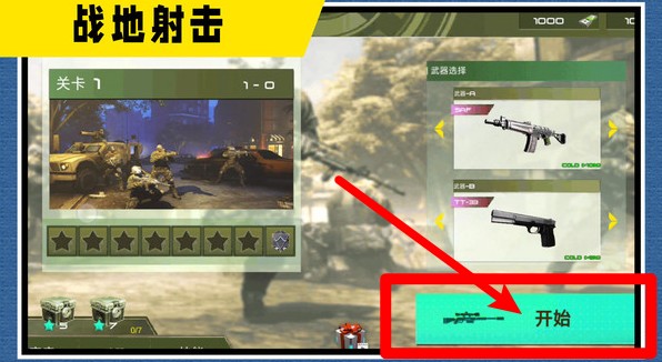 1.点击右下角“开始”按钮后,进入激烈的战场射击对抗,合理切换武器与利用地形,快速清理敌人完成任务目标。