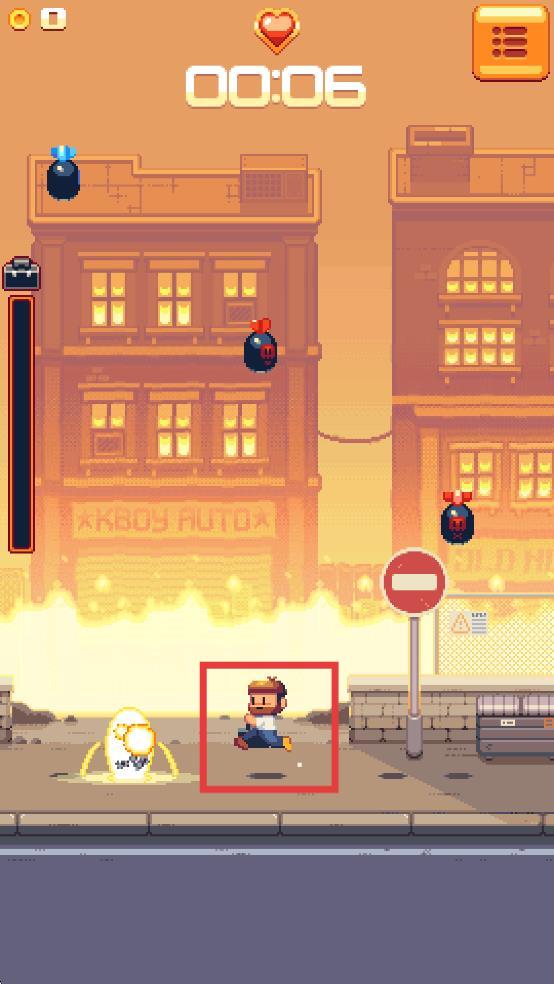 2、游戏的操作非常简单,长按屏幕即可控制人物移动,我们需要躲避天上落下来的炸弹。