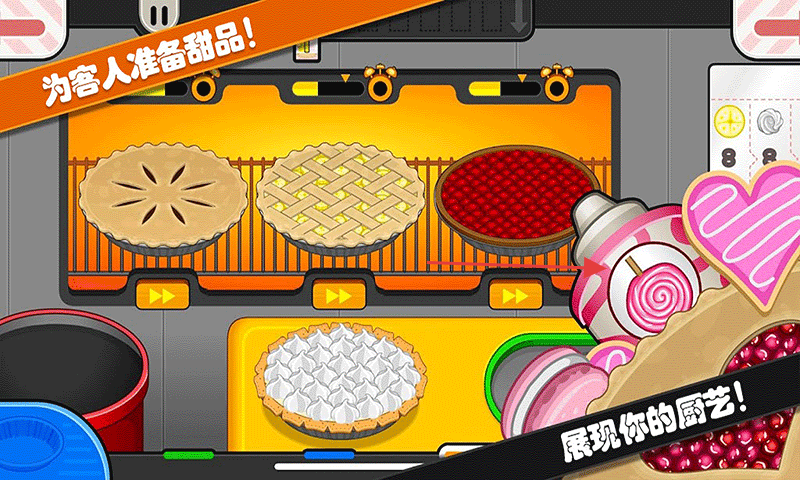 1、进入游戏后置身托卡迷你城堡购物中心的甜品店,首先熟悉制作台,准备开始制作小镇热门的水果味馅饼等甜品。