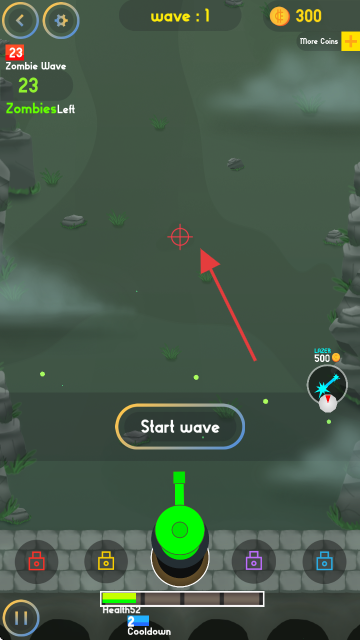 3、点击【Start wave】开启【Wave1】,操控炮台瞄准消灭僵尸。