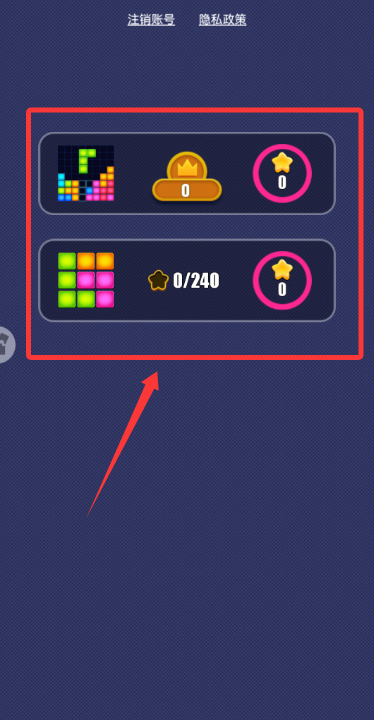 3、无尽模式适合放松休闲,随着分数提升会加速方块下落,全球排行榜记录最高分数,可以挑战自我的极限。