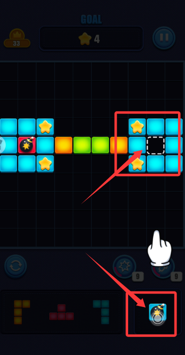 3、遇到复杂局面时使用特殊炸弹道具,瞬间清空指定区域内的所有障碍方块。