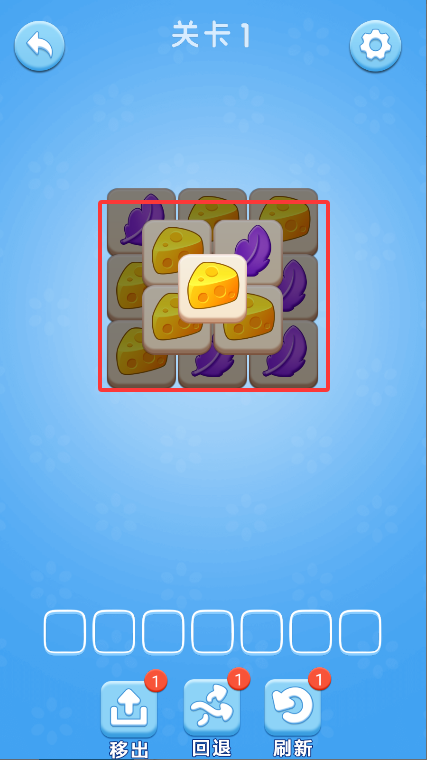 2、按照游戏规则将三个相同水果连成一条直线即可完成消除,特别注意七个空格的位置分布,合理安排水果的放置顺序以获得最佳效果。
