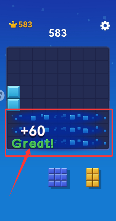 3、每成功消除一组方块界面会显示得分,可持续拼接、消除,积累分数,挑战更高纪录。