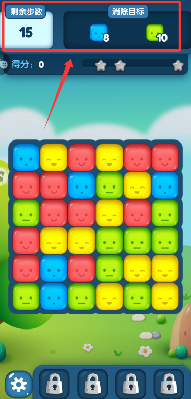 2、进入游戏后,头顶上是本关的通关目标,完成目标即可过关。