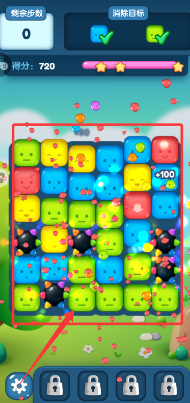 3、通关后,全屏的果冻都会开始爆炸,获得大量积分。