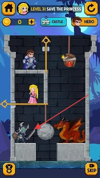 2、救公主关卡(LEVEL31),观察机关(绳子、石块),点击移除,让英雄避危险,救公主。