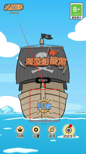 1、轻触游戏主界面的开始按钮,正式展开这段充满未知的海盗冒险旅程。