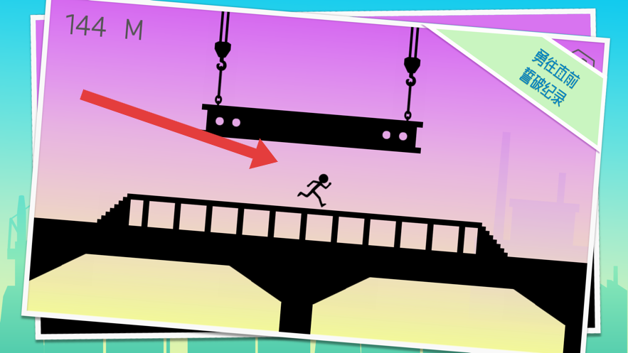 2、遇到大型钢梁障碍,提前规划路线,控制火柴人跳跃或绕行,避免碰撞,保持奔跑节奏。