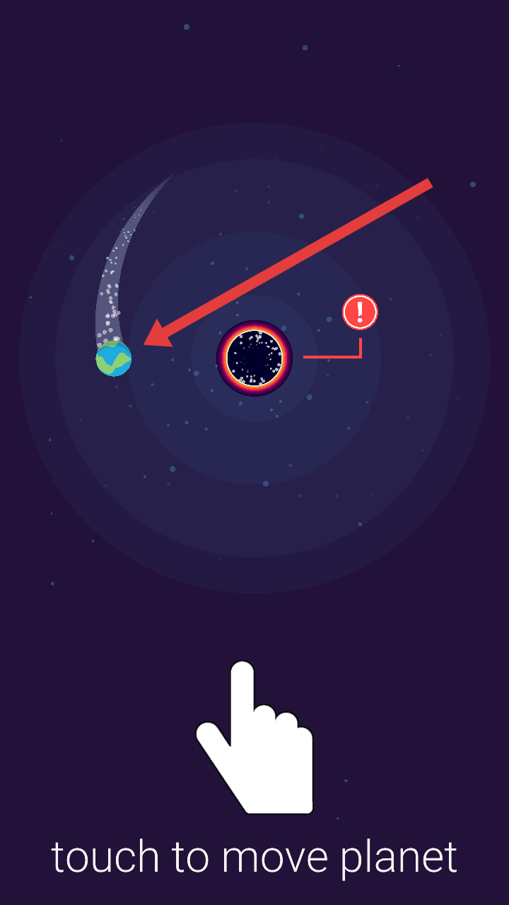2、在游戏中需要按照系统的提示操作,触摸屏幕操控地球移动,躲避黑洞等危险,完成关卡任务。