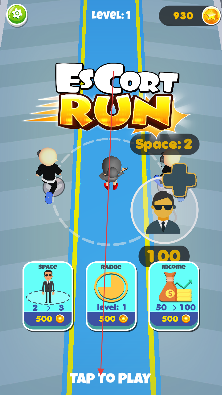2、途中可花费金币升级(SPACE、RANGE、INCOME),扩大保镖范围、提升收益,增强生存能力。